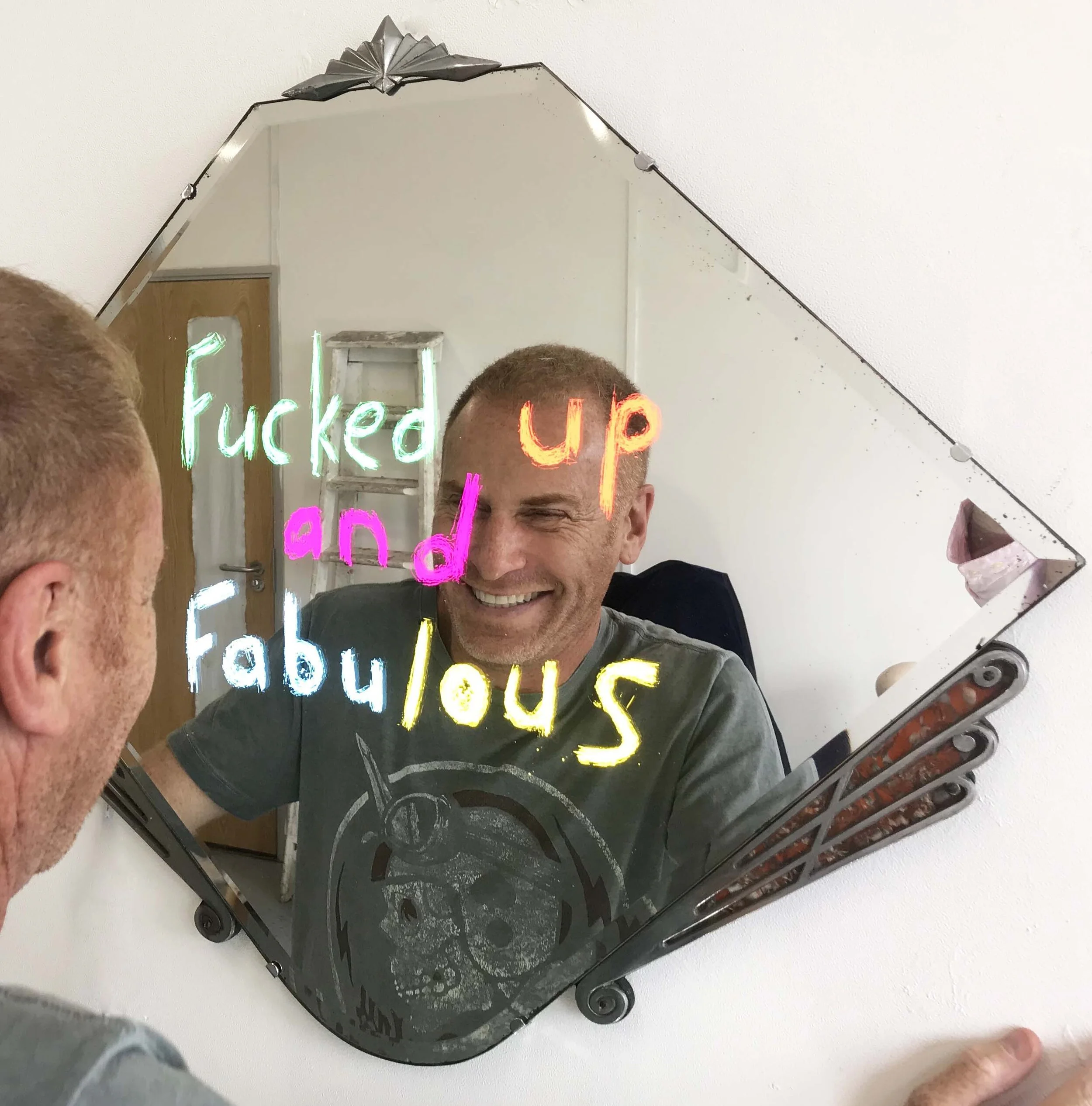 My mirror pieces, dating back to 2015, were a bridge between my nihilistic self depricating work and a new sense of optimism. While the initial mirrors were comically pessimistic “Nothing turned out as I hoped it would” eventually other works emerged that embraced a notion of self acceptance and self love regardless of the negatives, such as “I love this Motherfucker”. "Messer’s Mirrors", hand etched vintage and antique mirrors illuminated with LED lights, have featured in a one man show at The Lights Of Soho in London, a commissioned installation at Victoria House in The West End for The Other Art Fair and in “Looking Glass” at the Cornell Gallery in Miami, Florida. They can also be found is several private collections around the world.
